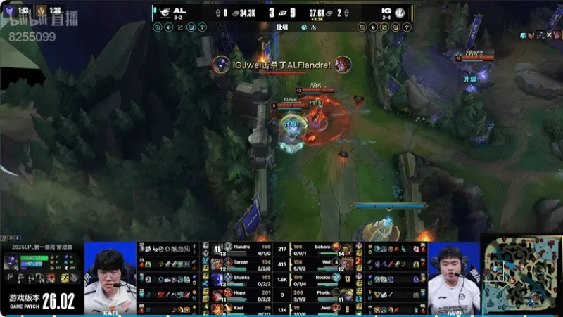 18分钟:IG野辅卡视野抓死蹲草的圣枪哥阿萝拉